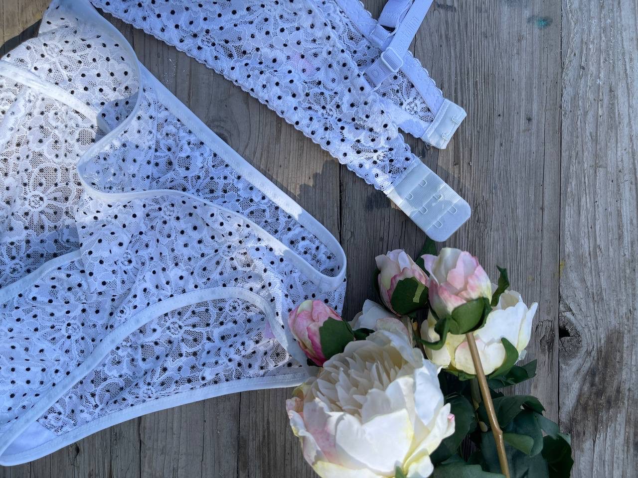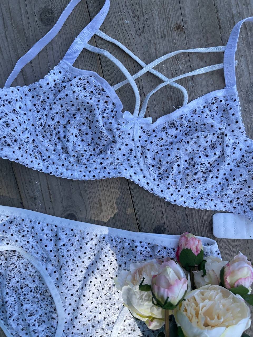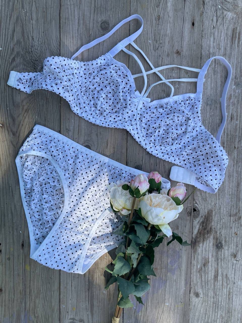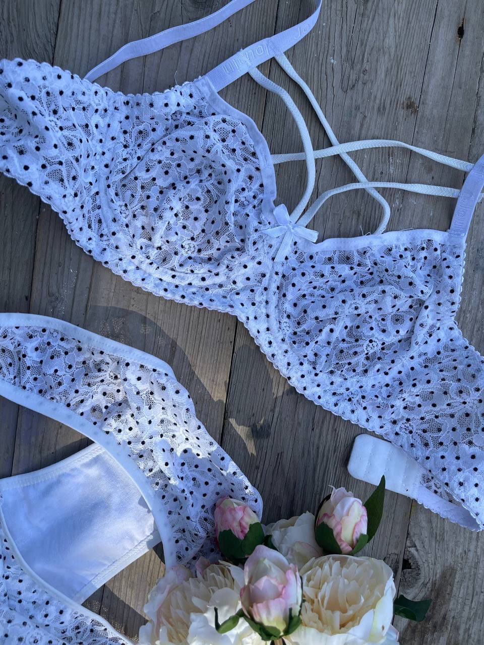ست فنرداررنگی سفید داره که با ترکیب برش های دانتل دار روش جلوه خیره کننده به محصول میده..